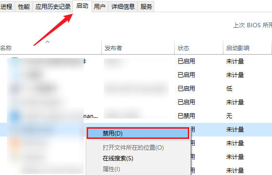 2.找到那些你不常用的软件,比如网盘、音乐软件,右键点击它们,然后选择“禁用”。